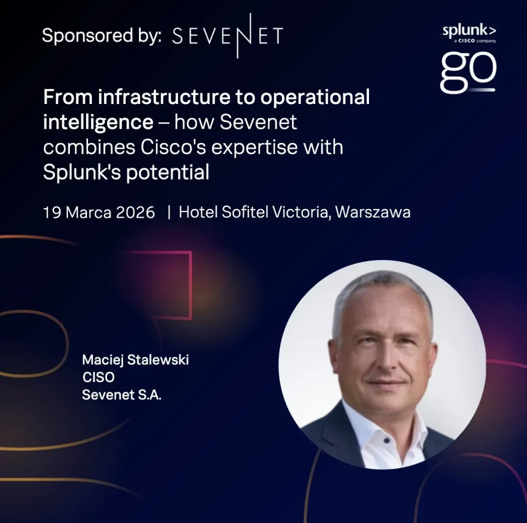 Maciej Stalewski, CISO at Sevenet, will also be at the conference, presenting: “From Infrastructure to Operational Intelligence – How Sevenet Combines Cisco Competencies with Splunk’s Potential.” You’ll learn how Sevenet, as a Cisco Preferred Partner in five key areas, combines infrastructure expertise with Splunk’s analytical capabilities, supporting organizations in building modern and resilient IT environments.